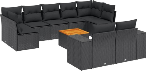 vidaXL 10-częsciowy zestaw wypoczynkowy do ogrodu, poduszki czarny rattan PE