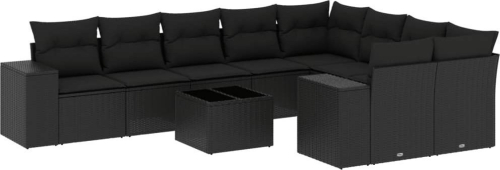 vidaXL 10-częściowy zestaw wypoczynkowy do ogrodu, poduszki czarny rattan PE