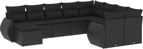 vidaXL 10-częściowy zestaw wypoczynkowy do ogrodu, poduszki czarny rattan PE