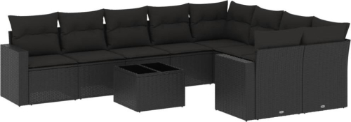 vidaXL 10-częściowy zestaw wypoczynkowy do ogrodu, poduszki czarny rattan PE