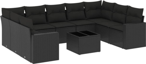 vidaXL 10-częściowy zestaw wypoczynkowy do ogrodu, poduszki czarny rattan PE