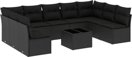 vidaXL 10-częściowy zestaw wypoczynkowy do ogrodu, poduszki czarny rattan PE