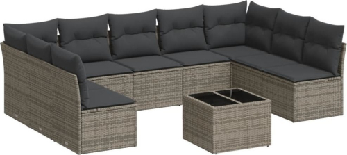 vidaXL 10-częsciowy zestaw wypoczynkowy do ogrodu, z poduszkami, szary