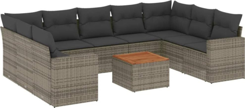 vidaXL 10-częsciowy zestaw wypoczynkowy do ogrodu, z poduszkami, szary