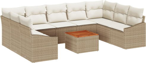 vidaXL 10-elementowy zestaw kanap ogrodowych z poduszkami beżowy polirattan akacjowy