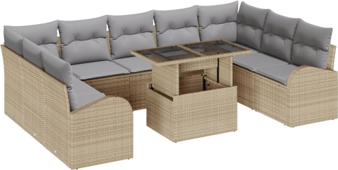 vidaXL 10 Elementowy Zestaw Sofy Ogrodowej z Poduszkami Beżowy Polirattan