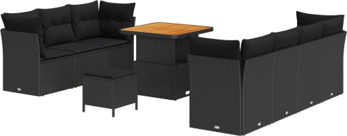 vidaXL 10 Elementowy Zestaw Sofy Ogrodowej z Poduszkami Czarny Polirattan Akacja