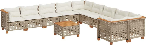 vidaXL 11-cz. zestaw mebli ogrodowych z poduszkami, beżowy, polirattan