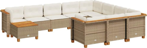 vidaXL 11-cz. zestaw mebli ogrodowych z poduszkami, beżowy, polirattan