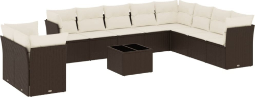 vidaXL 11-cz. zestaw mebli ogrodowych z poduszkami, brązowy, rattan PE