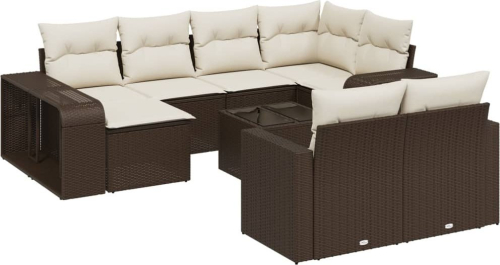 vidaXL 11-cz. zestaw mebli ogrodowych z poduszkami, brązowy, rattan PE