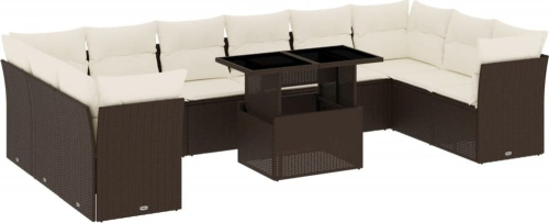 vidaXL 11-cz. zestaw mebli ogrodowych z poduszkami, brązowy, rattan PE