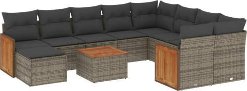 vidaXL 11-cz. zestaw mebli ogrodowych z poduszkami, szary rattan PE