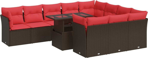 Vidaxl 11-cz. zestaw mebli z poduszkami, brązowy, polirattan i akacja