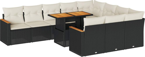 vidaXL 11-cz. zestaw mebli z poduszkami, czarny, polirattan i akacja
