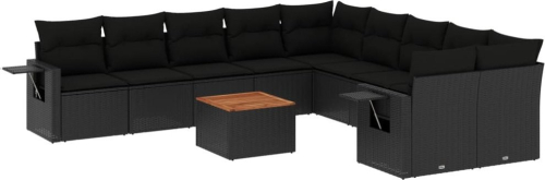 vidaXL 11-cz. zestaw wypoczynkowy do ogrodu, poduszki czarny rattan PE