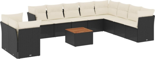 vidaXL 11-cz. zestaw wypoczynkowy do ogrodu, poduszki czarny rattan PE