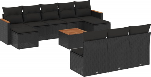 vidaXL 11-cz. zestaw wypoczynkowy do ogrodu, poduszki czarny rattan PE