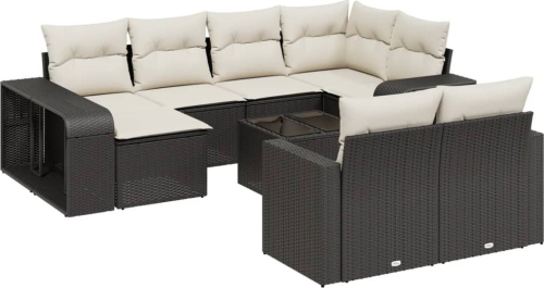 vidaXL 11-cz. zestaw wypoczynkowy do ogrodu, poduszki czarny rattan PE