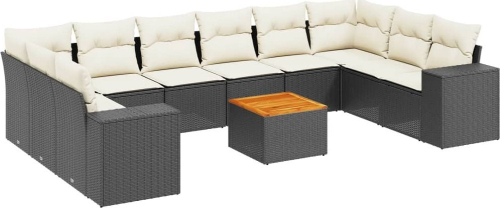 vidaXL 11-cz. zestaw wypoczynkowy do ogrodu, poduszki czarny rattan PE