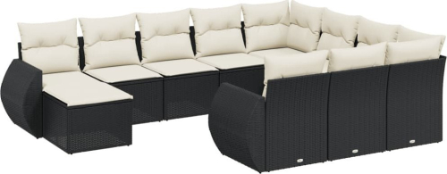 vidaXL 11-cz. zestaw wypoczynkowy do ogrodu, poduszki czarny rattan PE