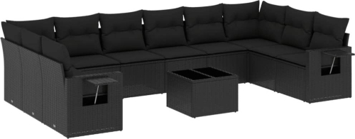 vidaXL 11-cz. zestaw wypoczynkowy do ogrodu, poduszki czarny rattan PE