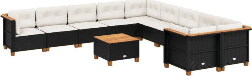 vidaXL 11-cz. zestaw wypoczynkowy do ogrodu, poduszki czarny rattan PE