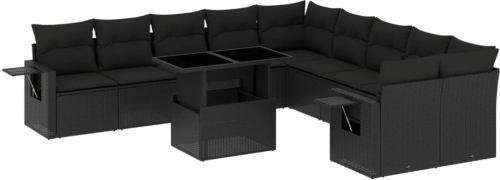vidaXL 11-cz. zestaw wypoczynkowy do ogrodu, poduszki czarny rattan PE