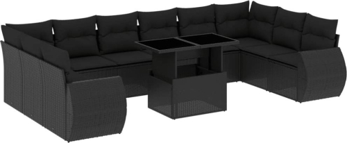 vidaXL 11-cz. zestaw wypoczynkowy do ogrodu, poduszki czarny rattan PE