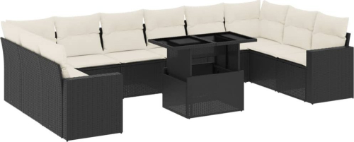 vidaXL 11-cz. zestaw wypoczynkowy do ogrodu, poduszki czarny rattan PE
