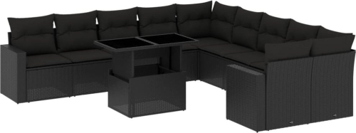 vidaXL 11-cz. zestaw wypoczynkowy do ogrodu, poduszki czarny rattan PE