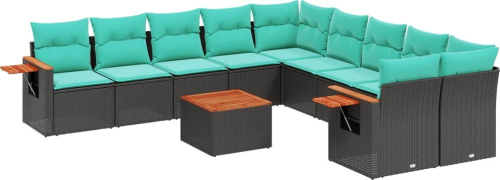 vidaXL 11-cz. zestaw wypoczynkowy do ogrodu, poduszki czarny rattan PE