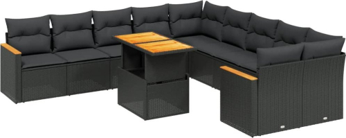 vidaXL 11-cz. zestaw wypoczynkowy do ogrodu, poduszki czarny rattan PE