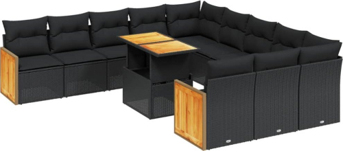 vidaXL 11-cz. zestaw wypoczynkowy do ogrodu, poduszki czarny rattan PE
