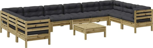 Vidaxl 11-cz zestaw wypoczynkowy do ogrodu, z poduszkami, impregnowany