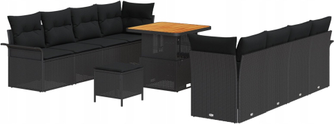 vidaXL 11-częściowy zestaw sof ogrodowych z poduszkami czarny polirattan akacja