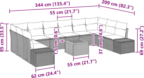 vidaXL 11-częściowy zestaw sof ogrodowych z poduszkami czarny polirattan akacja