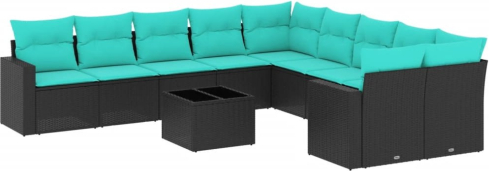 vidaXL 11-częściowy zestaw wypoczynkowy do ogrodu, poduszki czarny rattan PE