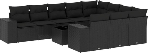 vidaXL 11-częściowy zestaw wypoczynkowy do ogrodu, poduszki czarny rattan PE