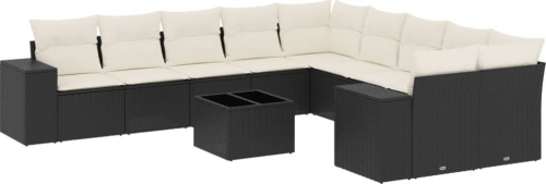 vidaXL 11-częściowy zestaw wypoczynkowy do ogrodu, poduszki czarny rattan PE