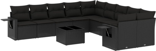 vidaXL 11-częściowy zestaw wypoczynkowy do ogrodu, poduszki czarny rattan PE