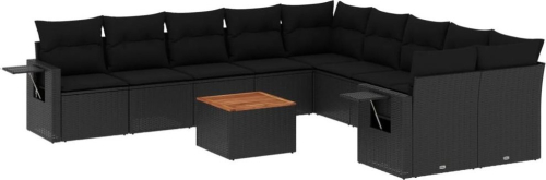 vidaXL 11-częsciowy zestaw wypoczynkowy do ogrodu, poduszki czarny rattan PE