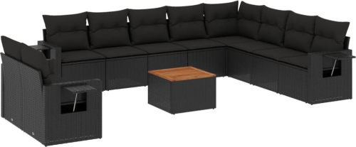vidaXL 11-częściowy zestaw wypoczynkowy do ogrodu, poduszki czarny rattan PE