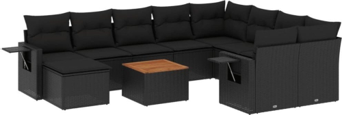 vidaXL 11-częsciowy zestaw wypoczynkowy do ogrodu, poduszki czarny rattan PE