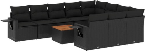 vidaXL 11-częsciowy zestaw wypoczynkowy do ogrodu, poduszki czarny rattan PE