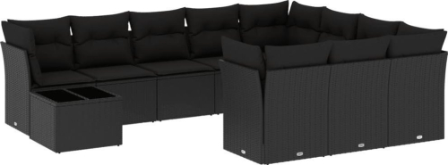 vidaXL 11-częsciowy zestaw wypoczynkowy do ogrodu, poduszki czarny rattan PE