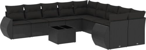 vidaXL 11-częściowy zestaw wypoczynkowy do ogrodu, poduszki czarny rattan PE