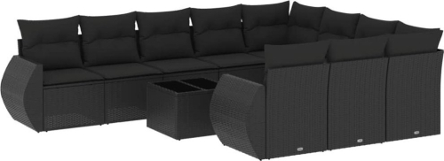 vidaXL 11-częściowy zestaw wypoczynkowy do ogrodu, poduszki czarny rattan PE