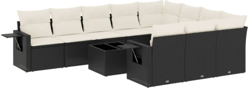 vidaXL 11-częściowy zestaw wypoczynkowy do ogrodu, poduszki czarny rattan PE