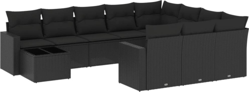 vidaXL 11-częściowy zestaw wypoczynkowy do ogrodu, poduszki czarny rattan PE